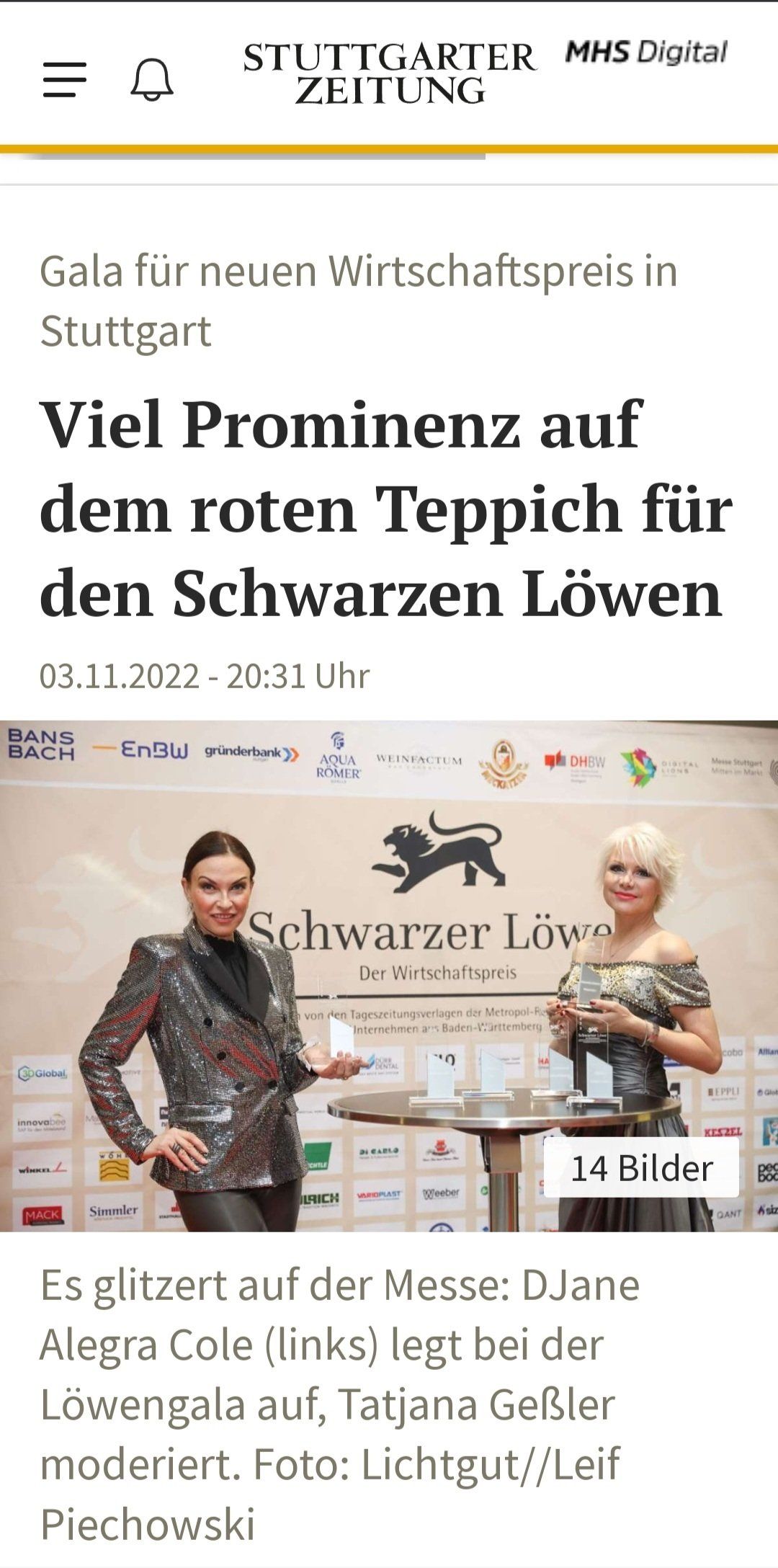 Zum vierten Mal wurde in Stuttgart Baden Württembergs renommiertester Wirtschaftspreis, SCHWARZER LÖWE, verliehen. Veranstalter sind die wichtigsten regionalen Tageszeitungen der Wirtschaftsregion Stuttgart.