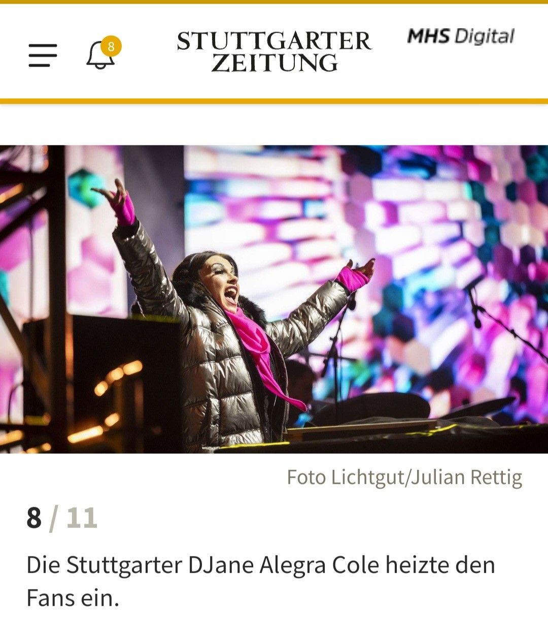Gelegentlich erscheinen Berichte über die DJ-Sets von DJane Alegra Cole in der Presse.