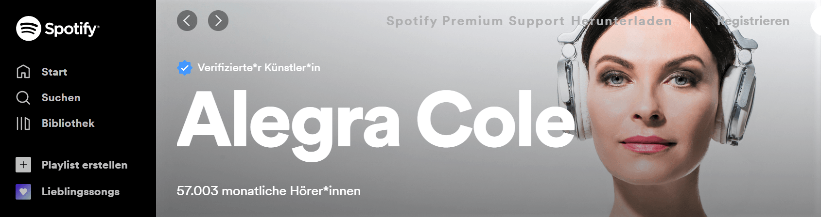 Der schwedische Musik - Streamingdienst Spotify ist weltweit Marktführer unter den Streaming Diensten. Alegra Cole ist verifizierte Künstlerin und veröffentlicht alle neuen Singles auf ihrem Account.